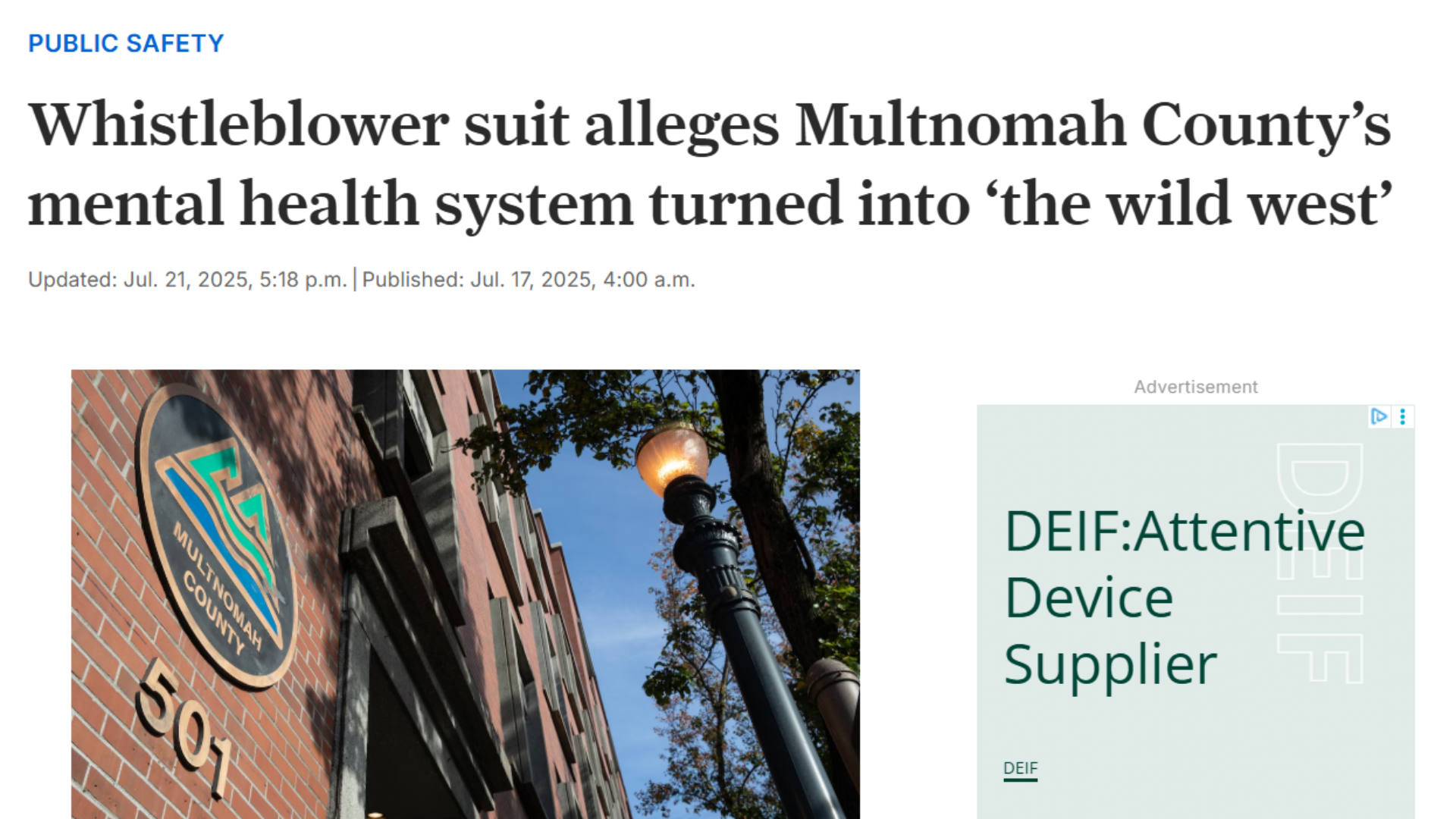 This whistleblower action should include the leaders in charge of perpetuating Multnomah County’s failed mental health system.